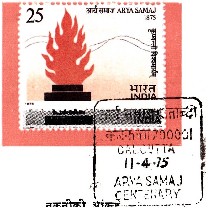 Issued for : The Posts and Telegraphs Department is happy to bring out a stamp to commemorate the centenary of the Arya Samaj.