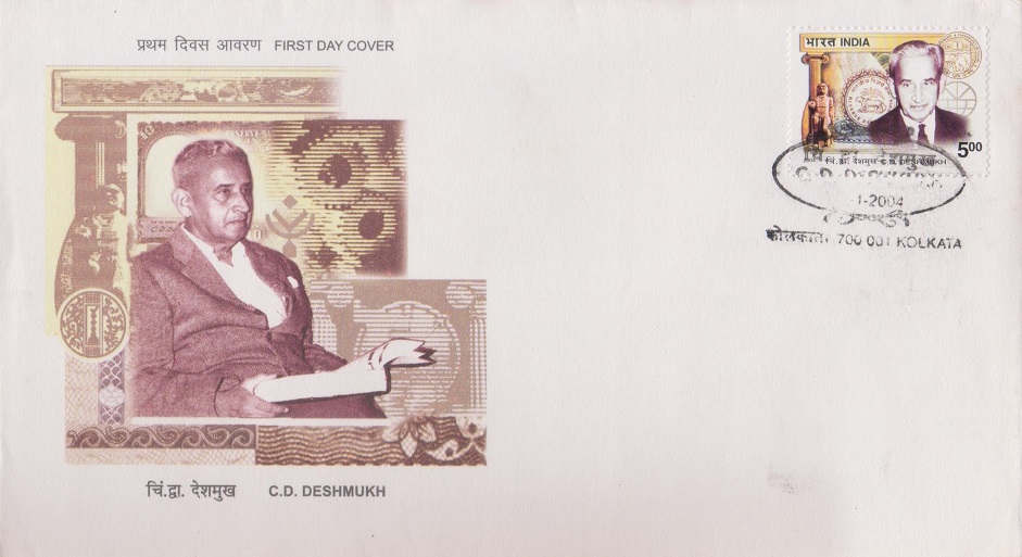 A commemorative postage stamp on the Birth Anniversary of Sir Chintaman Dwarakanath Deshmukh, first Indian Governor of the Reserve Bank of India :