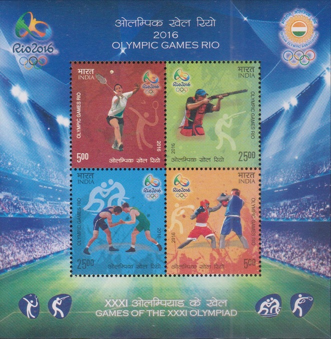 - Department of Posts is issuing a set of four Commemorative stamps to mark this prestigious event. The stamps are a stylized portrayal of sportsmen engaged in Badminton, Shooting, Wrestling and Boxing where India got medals in the past edition of Olympics.