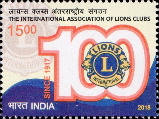 A commemorative postage stamp on the Centenary of the Lions Clubs International (LCI), an international non-political service organization founded by Melvin Jones in Chicago, USA, in 1917 :