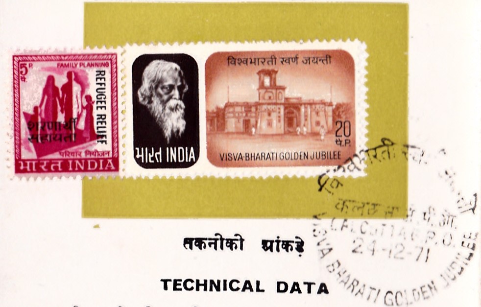 Issued for : The Visva-Bharati completed 50 years of its very useful service to the nation in 1971. The P&T Department feel privileged in commemorating the Golden Jubilee of this national institution by bringing out a special postage stamp to mark the occasion.